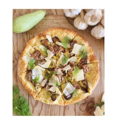 Fior di latte, Italian pork & fennel sausage, artichoke, fresh fennel, garlic, parsley