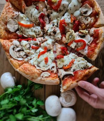 Fior di latte, mushroom, roasted capsicum, artichoke